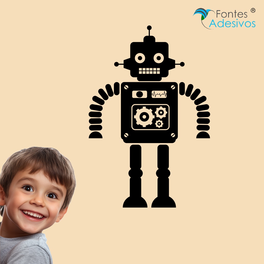 Transforme o ambiente com o Adesivo Decorativo Robô, uma solução criativa e cheia de personalidade para deixar o espaço das crianças divertido e inspirador.